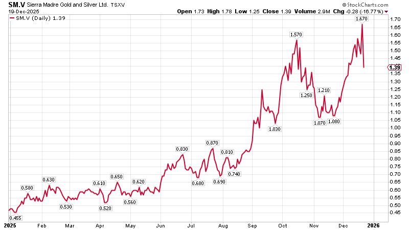 Irony: silver has been a huge winner for readers this year and our pick, Sierra Madre Gold and Silver (SM.V), has been a joy to own. From 45c north of $1.50 :(