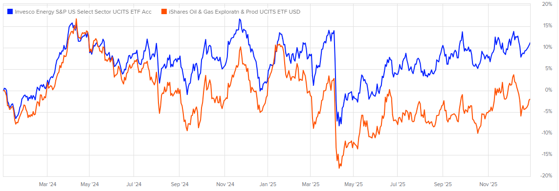 The iShares Oil & Gas Exploration & Production ETF (LSE:SPOG) as a representative of the smaller end of the investable universe was down about 6% in Sterling terms (roughly flat in dollars).