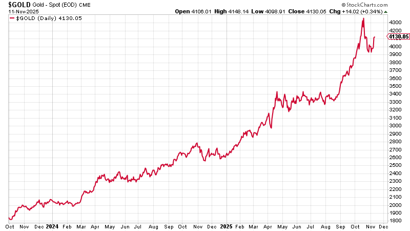We began with a 15% allocation to gold, and I still recommend that as a staring point. That allocation has obviously grown within the portfolio due to gold’s stellar performance, but we are not sellers of gold, even to balance the portfolio. Gold has further to go, even if it could do with some consolidation for a few months.
