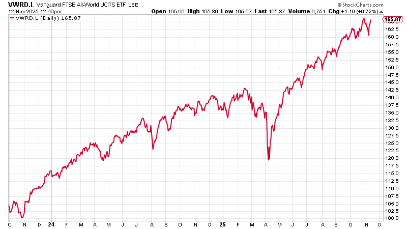 But it was getting fiddly, so for the sake of simplicity, we sold it all and bought the Vanguard FTSE All-World UCITS ETF (VWRP.L), which tracks the FTSE All World Index (over 4,000 mid- and large-cap stocks).
