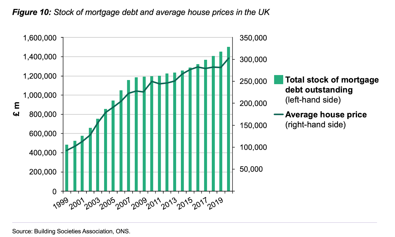But average UK house prices over the same period went from £167,000 to to £270,000 (more in England). Mortgage lending, meanwhile, more than doubled (from £153bn to £316bn) over the same period.The relationship between money supply, aka credit, and house prices is obvious.