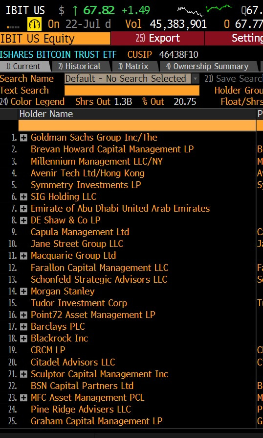 Now here’s a list of the iShares bitcoin ETF’s biggest holders.