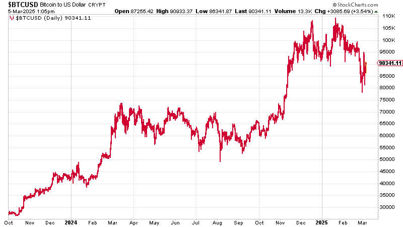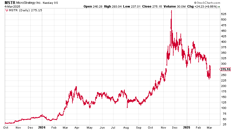 For those in the UK who can’t buy it directly or buy the ETFs, our vehicle to play bitcoin via a UK-broker, and circumvent/satisfy ill-conceived-FCA regulation, was to own Nasdaq-listed Strategy Inc (Nasdaq:MSTR).