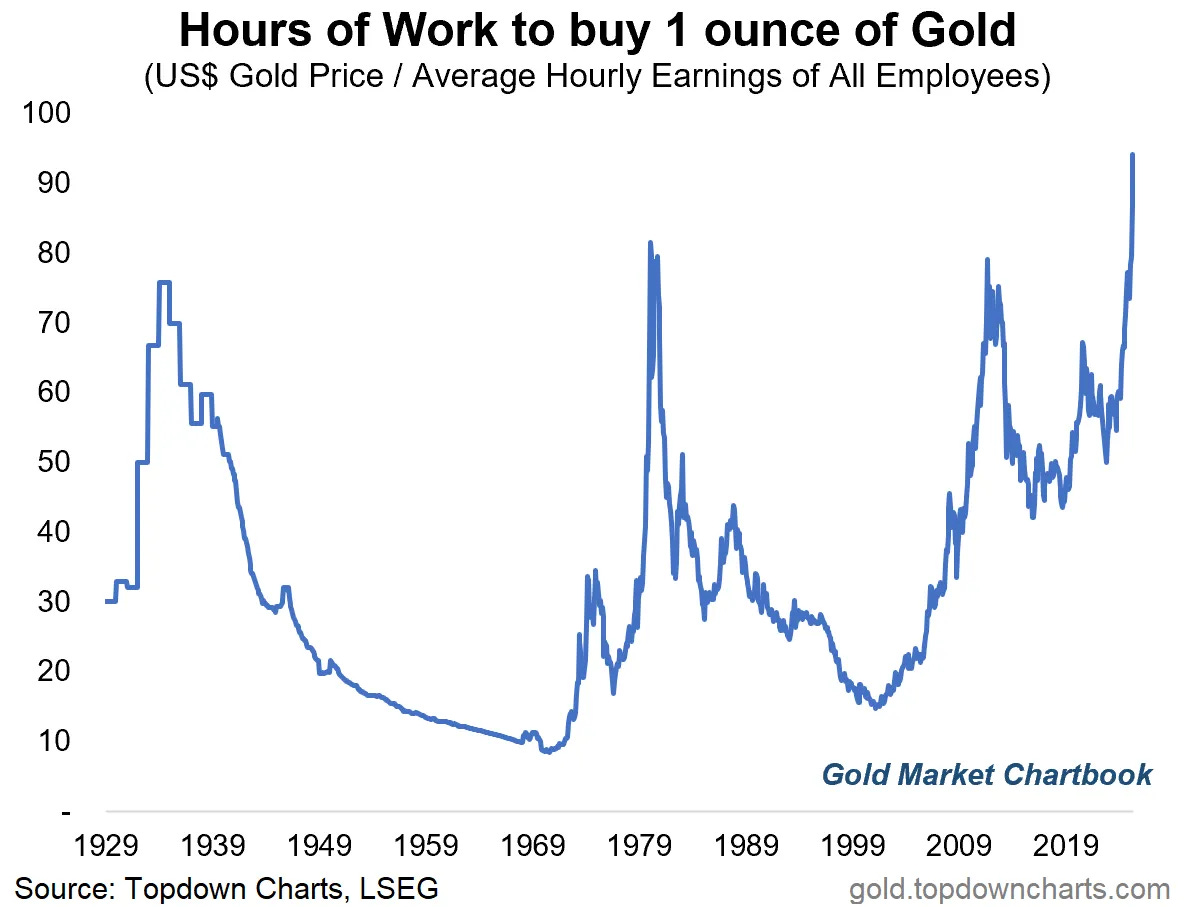 It now takes more work than at any time in the last 100 years to buy an ounce of gold.
