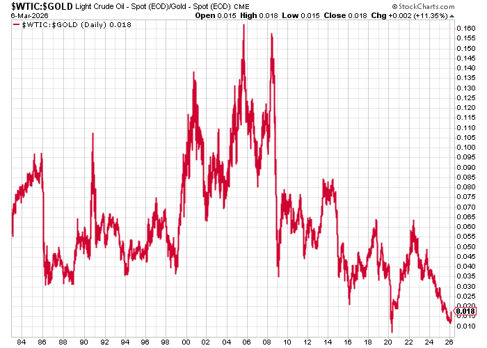 Here also for your reference is a long-term chart (since 1983) of the gold-oil ratio.